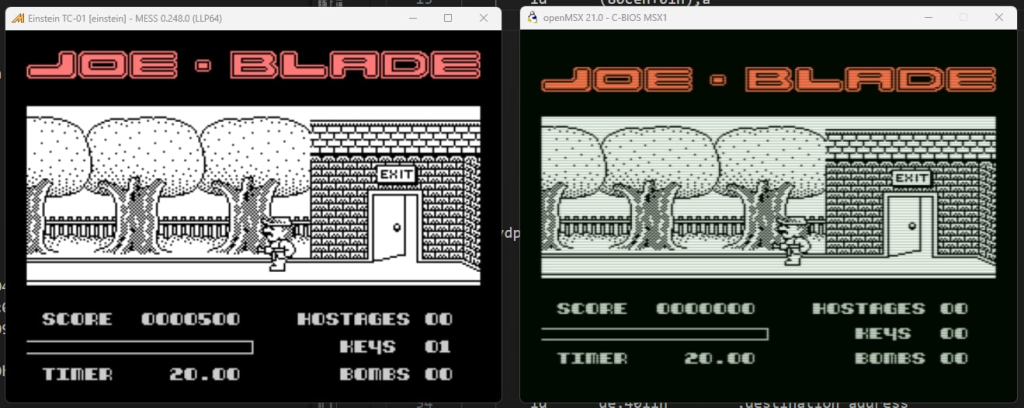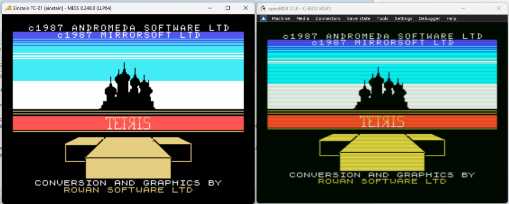 You can see it running side by side with the MSX emulator. Einstein on the left, MSX on the right.