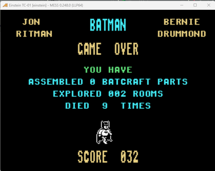 Adam had contact with a Hungarian chap over on the Enterprise Forever forum who was knowledgeable in the fine are of taking an MSX .rom file, smashing it apart, fiddling with its bits and re assembling it into a working Einstein file that can be put on to a .DSK image and run in MAME. This is called PORTING and is possibly how some of the older Einstein games were created back in the day.